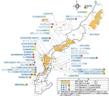 There have been various plans to relocate Marine Corps Air Station Futenma—first off the island and most recently to Camp Schwab—however, as of November 2014 the future of any relocation is uncertain with the election of base-opponent Onaga as Okinawa governor.[2] Onaga won against the incumbent Nakaima who had earlier approved landfill work to move the base to Camp Schwab in Henoko. Onaga has promised to veto the landfill work needed for the new base to be built and insisted Futenma should be moved outside of Okinawa.[3]