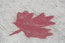 Predominant symbols of Canada include the maple leaf, beaver, and the Canadian horse.[113][114][115] Many official symbols of the country such as the Flag of Canada have been changed or modified over the past few decades to Canadianize them and de-emphasise or remove references to the United Kingdom.[116] Other prominent symbols include the sports of hockey and lacrosse, the Canada goose, the Royal Canadian Mounted Police, the Canadian Rockies,[117] and more recently the totem pole and Inuksuk;[118] material items such as Canadian beer, maple syrup, tuques, canoes, nanaimo bars, butter tarts and the Quebec dish of poutine have also been defined as uniquely Canadian.[118][119] Symbols of the Canadian monarchy continue to be featured in, for example, the Arms of Canada, the armed forces, and the prefix His Majesty's Canadian Ship. The designation Royal remains for institutions as varied as the Royal Canadian Armed Forces, Royal Canadian Mounted Police and the Royal Winnipeg Ballet.[120][121]
