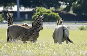 On the lower slopes of Devil's Peak, above Groote Schuur Hospital, an animal camp bequeathed to the City of Cape Town by Cecil John Rhodes has been used in recent years as part of the Quagga Project.[39] The quaggas used to roam the Cape Peninsula, the Karoo and the Free State in large numbers, but were hunted to extinction during the early 1800s. The last quagga died in an Amsterdam zoo in 1883. In 1987 a project was launched by Reinhold Rau to back-breed the quagga, after it had been established, using mitochondrial DNA obtained from museum specimens, that the quagga was closely related to the plains zebra, and on 20 January 2005 a foal considered to be the first quagga-like individual because of a visible reduced striping was born. These quagga-like zebras are officially known as Rau quaggas, as no one can be certain that they are anything more than quagga look-alikes. The animal camp above Groote Schuur Hospital has several good looking Rau quaggas, but they are unfortunately not easily seen except from within the game camp, which is quite large and undulating, and the animals are few. The animal camp is not open to the public.