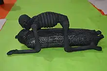 He has also created murals and other artworks in barro negro, many of which use the brilliance of the medium to play with the light.[5] Currently, much of his inspiration comes from other parts of Mexico.[5] Carlomagno creates pieces for special orders. Some of these have included historical and cultural figures, which have been exhibited in museums and galleries in Mexico and abroad and many are part of private collections. His work has been featured in locations such as the Mexican Fine Arts Center Museum in Chicago, the Galería de la Raza in San Francisco and the Laumeier Sculpture Park in Saint Louis, Missouri.[3]