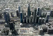 Carlton Hotels & Suites are headquartered in the right of the twin towers just behind Burj Khalifa, on the Sheikh Zayed Road in Dubai, U.A.E.[3]