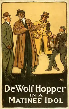 DeWolf Hopper gave the poem's first stage recitation on August 14, 1888, at New York's Wallack Theatre as part of the comic opera Prinz Methusalem in the presence of the Chicago White Stockings and New York Giants baseball teams; August 14, 1888 was also Thayer's 25th birthday. Hopper became known as an orator of the poem, and recited it more than 10,000 times (by his count—some tabulations are as much as four times higher) before his death.[1]