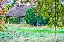 Casino House was built around 1750[21] though some claims date it earlier to the late 17th century.[7][22] It is a two-story thatched house with eight bays.[21] It was a shooting lodge for the Talbot family (though some have suggested a romantic summer house[7]) and remained with the family until 1927.[22] The building had been allowed to deteriorate.[12][23][24] May 2019 saw the building renovated and extended to house the railway museum and collection.[20][3]