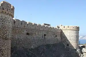 Castillo de San Miguel is a castle located in Almuñécar, in the province of Granada, Spain. It is bounded by the remains of the original city walls. The castle sits on a small hill, which is difficult to access. The original fortifications date of 1st century B.C. During the Moorish occupation, the castle was enlarged to include 40 towers and three gates.[1] It has a wide moat and a drawbridge. Parts of the building are topped with battlements of pyramid shape. The keep, which was on the inside, is demolished. It was declared a Bien de Interés Cultural monument in 1993. There is a small museum within the castle grounds.