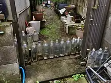 In Japan, plastic bottles are often placed outside houses because of the belief that the light from the water will reflect and stop the cats from entering the property to urinate.[12]