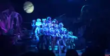 - ↑ The method in which Grizabella ascends to the Heaviside Layer varies depending on the production. In the original London and Broadway productions, she climbs up a stairway that emerges from the ceiling. In the 1990s and 2000s scaled-down touring productions, she ascends via a flying saucer-like vessel.[30]