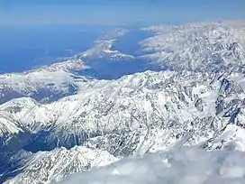 Mount Elbrus, at 5,642 m (18,510 ft), in the Caucasus Mountains, is sometimes cited as the highest peak in Europe. Mount Elbrus is 832 m (2,730 ft) higher than Mont Blanc, the highest peak in the Alps and Western Europe at 4,810 m (15,780 ft). However, there are some technical disagreements over whether Mount Elbrus is in Europe.[8] The crest of the Greater Caucasus Mountains is usually taken to define the Greater Caucasus Watershed which marks the continental boundary between Asia and Europe for the region between the Black and Caspian seas. This classification would place Mount Elbrus at the junction with Asia.[4]