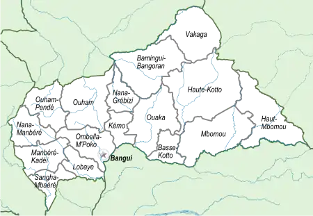 103. 1 2 Ngoulou, Fridolin. "La Centrafrique dispose désormais de 20 préfectures et de 84 sous-préfectures". oubanguimedias.com. Oubangui Medias. Retrieved 8 November 2023.