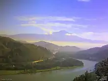 Landscape of the Serayu River Valley, with Mount Slamet in the background.