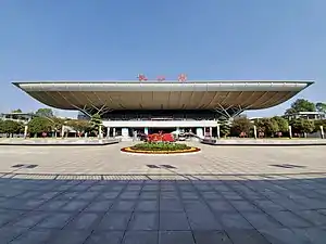 Changsha South railway station (simplified Chinese: 长沙南站; traditional Chinese: 長沙南站; pinyin: Chángshānán zhàn) is a metro station and a railway station of Wuguang Passenger Railway and Hukun Passenger Railway. The station is located in Lituo Subdistrict, Yuhua District, Changsha, Hunan, China. It is a hub and the connecting point of Beijing–Guangzhou–Shenzhen–Hong Kong High-Speed Railway, Shanghai–Kunming High-Speed Railway and the proposed Xiamen-Changsha-Chongqing High-Speed Railway. The station was opened on 26 December 2009.