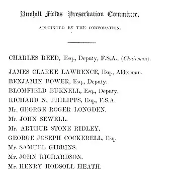 List of members of the Bunhill Fields Preservation Committee