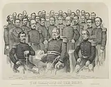 When Welles severely criticized Wilkes in his December 1863 annual report over his retention of the Vanderbilt, Wilkes wrote a scathing response that found its way into the newspapers. A court of inquiry accused Wilkes of responsibility for its publication, and he was brought before a March 1864 court martial, facing charges of disobedience of orders, insubordination, disrespect of a superior officer, disobedience of naval regulations, and conduct unbecoming an officer. He was found guilty of all charges and sentenced to public reprimand and suspension for three years.[20] However, Lincoln reduced the suspension to one year, and the balance of charges were dropped. On July 25, 1866, he was promoted to the rank of rear admiral on the retired list.[6]