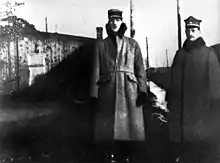 De Gaulle's unit gained recognition for repeatedly crawling out into no man's land to listen to the conversations of the enemy, and the information brought back was so valuable that on 18 January 1915 he received the Croix de Guerre. On 10 February he was promoted to captain, initially on probation.[15] On 10 March 1915, de Gaulle was shot in the left hand, a wound which initially seemed trivial but became infected.[23] The wound incapacitated him for four months and later forced him to wear his wedding ring on the right hand.[3]:61[15][24] In August he commanded the 10th company before returning to duty as regimental adjutant. On 3 September 1915 his rank of captain became permanent. In late October, he returned to command of 10th company.[15]