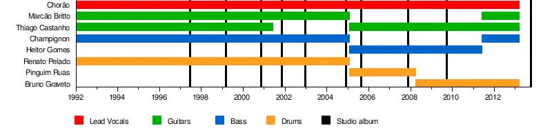 Vocalist Chorão's drug addiction and disagreements with other musicians frequently overshadowed the band. Chorão was the only founding member to remain through several line-up changes. After Chorão died of a cocaine overdose on March 6, 2013, the band disbanded.[2]