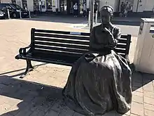 In 2015 a sculpture by Vivien Mallock was installed outside Eastleigh railway station,[24] as a tribute to Yonge for having effectively named the town. It shows her at the age of about 45, when she named Eastleigh parish. It shows her sitting on a bench with a book on her lap, with space for members of the public to sit alongside her.