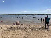 The Chatfield Reservoir Reallocation Project, a US$171 million construction project that took place between 2017 and 2020, created an additional 20,600 acre-feet (25,400,000 cubic meters) of water storage in the reservoir, raising its level by about 12 feet (3.7 meters). The project involved moving some of the surrounding park's facilities back from the new, higher lake levels.[4][5][6]