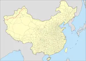 China National Highway 217 (G217) runs south from Altay, Xinjiang to Hotan, Xinjiang. It is 1,753 kilometres in length and runs southwest from Altay towards Kuqa County and from there southwards through the Taklamakan Desert to Hotan.