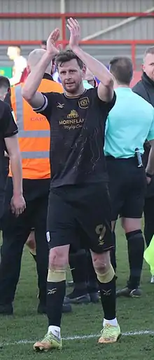 ![]() Porter applauds Crewe Alexandra supporters after scoring the winner at Cheltenham Town on 26 February 2022 | |||