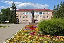 The building of the administration of Chudovo and the Chudovsky district on Nekrasov Street and the monument to Vladimir Lenin