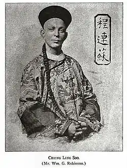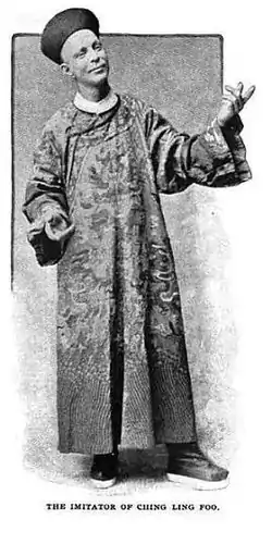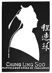 William Ellsworth Robinson (April 2, 1861 – March 24, 1918) was an American magician who went by the stage name Chung Ling Soo (Chinese: 程連蘇; pinyin: Chéng Liánsū). He is mostly remembered today for his extensive use of yellowface in his act to falsely represent himself to be a Chinese man who spoke little English, as well as for his accidental death due to a failed bullet catch trick.[1][2]