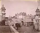 The earliest royal structure he built here was the Royal courtyard or 'Rai Angan',[9][10][11] which was the beginning of the building of the City Palace complex. The court was built at the location where the hermit had advised Maharana to build his new capital.[8][9][10][11][12]