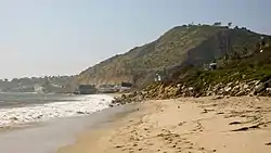 Some of the film was shot at Lake Tahoe's surrounding areas and Kern County.[26] The "falling" scene was partially shot at the Los Angeles Bank of America, while Cage was placed on a moving rig over a bluescreen.[25] Ryan's death scene was filmed on Old Mill Road in Crestline, California.[26] The library scenes were shot at San Francisco Public Library.[19] For angel scenes shot at Malibu Beach, though the characters are not physical beings, it was decided that the angels would have briefly visible footprints to avoid the perception that the sand was too hard to leave imprints. Thus, Nelson erased the footprints soon after they are first seen.[25]