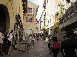 City of San Marino is the top terminus of the Funivia di San Marino, an aerial cablecar system that connects the city to Borgo Maggiore.[3] Running every fifteen minutes, the two-minute ride is renowned for its paronamic views over San Marino, the Province of Rimini, and the Adriatic Sea.[3][4] The City of San Marino terminus is located at the turn of Contrada Omagnano with Contrada del Pianello, at the historic city centre's northern end, next to the Tourism Secretariat and less than 200 metres (660 feet) from the Basilica of San Marino and the Piazza della Libertà.[5]