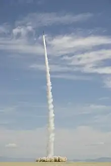 The rocket was launched on Monday, May 17, 2004.[1][6] This rocket was the first amateur rocket to exceed 100 kilometres (62 mi), the official boundary of outer space.[6] It was launched at the Black Rock Desert.[7] The rocket reached top speed of 3,420 mph (5,500 km/h) in 10 seconds, and reached an estimated altitude of 72 miles (116 km).[6] The avionics were recovered by deployment of a parachute.[6][8] The final verified altitude of the rocket was released as 72 miles (116 km).[6][9][10][11]