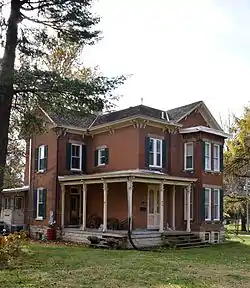 The Clark House is a historic building located in Iowa City, Iowa, United States. This property was originally part of Plum Grove, the estate of Iowa's first Territorial Governor, Robert Lucas. This lot was eventually sold to Florence A. Clark in 1870. She was a granddaughter of Governor Lucas, and her husband, Augustus L. Clark, was a direct descendant of a signer of the Declaration of Independence, Abraham Clark.[2] Built in 1874, the house is a transitional style from the simplicity of Plum Grove to the richness of the Victorian. The 2+12-story brick Italianate has an L-shaped main block and a 1+12-story wing off the back. The main block is capped with a hip roof with gable ends and bracketed eaves. It also has a wrap-around porch. The house was listed on the National Register of Historic Places in 1996.[1]