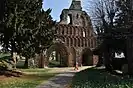 Medieval Colchester's main landmark is Colchester Castle, which is an 11th-century Norman keep, and built on top of the vaults of the old Roman temple. There are notable medieval ruins in Colchester, including the surviving gateway of the Benedictine abbey of St John the Baptist (known locally as "St John's Abbey"), and the ruins of the Augustinian priory of St Botolph (known locally as "St Botolph's Priory"). Many of Colchester's parish churches date from this period.