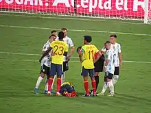 Shortly before the 1993 Copa América in Ecuador, Maturana returned for his second spell as Colombia manager; Colombia's captain during the tournament was Carlos Valderrama. Colombia began their tournament campaign by topping their group undefeated. In the first match, the team beat Mexico 2–1 with goals from Adolfo Valencia and Víctor Aristizábal. Colombia drew their next two games against Bolivia and Argentina. Despite sharing the same points as Argentina, Colombia finished first due to superior goal difference. In the quarter-finals, they beat Uruguay on penalties, and lost to eventual winners Argentina in the semi-finals on penalties, but won the third place match against Ecuador to finish third for the second time in their history. Freddy Rincón finished as Colombia's top scorer with two goals against Argentina in the first round and against Ecuador in the third-place match. Along with achieving qualification to the 1994 World Cup, Colombia finished top of their qualifying group without having lost a match, which included a historic 0–5 victory over Argentina in Buenos Aires.[34] Curiously, a few days before the crucial match, Diego Maradona launched a phrase during a television interview: while putting palms of the hands parallel to the ground at chest height, one above the other, said "You can't change history, history shouldn't be changed: Argentina up, Colombia down."[35] Expectations of the team were high, some even naming them as favorites to win the tournament, as they had only lost one official match from July 1992 going into the World Cup. Colombia was assigned to Group A with the hosts United States, Romania, and Switzerland. During the tournament, the internal conflict within Colombia proved to be detrimental and harmful for the Colombian squad as the team was distracted from their main goal. Colombia only earned one win over Switzerland and suffered two losses, which would eliminate them in the first phase. The first match against Romania ended with a 3–1 defeat which notoriously angered Colombian drug cartels who had previously bet money on Colombia to win the match, which resulted in various death threats made to relatives of the Colombian players and manager Maturana.[36][37] During the match against the United States, an unwanted incident occurred, when Andrés Escobar scored an own goal, leading to Colombia's elimination as they lost 2–1. Escobar was later murdered in Colombia a few days after the own goal, and this traumatic incident would lead to the demise of Colombia's first Golden Generation.[38][39][40]