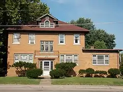 The historic district is quite possibly the earliest apartment complex in the city of Davenport.[3] The city has a long history of multiple-family housing. There is at least one row house from the 1860s still in existence. The double-house, or duplex, was popular in the city throughout the 19th century and were designed in the same styles as single-family dwellings. Larger apartment blocks of three to five floors were built in and around the city center for middle and upper-middle class households around the turn of the 20th century. During the 1910s and 1920s, most residential construction in the city was devoted to single-family homes. Harrison Manor was built from 1925 to 1926. It is a 46-unit building on Harrison Street, across from Vander Veer Park. At the time it was the largest apartment building constructed in Davenport and was similar to the apartment blocks that were being built in Chicago during the same time period.[3]