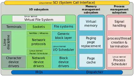 Location of the network device drivers in a simplified structure of the Linux kernel.