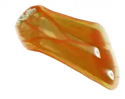 Volume rendered CT scan of a forearm with different colour schemes for muscle, fat, bone, and blood