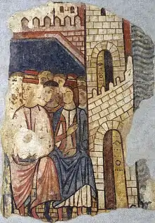 Battle of Portopí. Fragments of the mural paintings of the conquest of Mallorca from the Palacio Aguilar in Barcelona, conserved in the Museu Nacional d'Art de Catalunya. Dated: 1285–1290