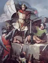Ramon Berenguer III thrusting the sign of Barcelona in the Fos castle (Fos-sur-Mer, Provenza), by Marià Fortuny (1856 or 1857), Reial Acadèmia Catalana de Belles Arts de Sant Jordi (on trust at the Palau de la Generalitat de Catalunya).