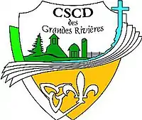 The logo of the CSCDGR was created by Carmel Arsenault, a local teacher. It represents the different riches found in the region; mining, agriculture and forestry. The colours are also symbolic: green represents forestry as well as renewal and hope; blue represents water not only from the rivers, is a symbol of baptism and also represents the calm northeastern skies of the region; and yellow represents wheat and agriculture, as well as joy for life that is lived in the region.[1]