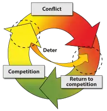 Conflict continuum: competition short of conflict, conflict itself, and the return to competition,[16]:10 possibly via deterrence —Gen. David G. Perkins