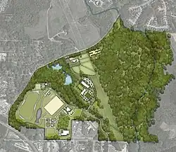 Once complete, the center is planned to be used as a training campus for police and fire services and is expected to open at the end of 2023.[5] Planned facilities include classrooms, a burn building, a mock city (including apartments, a bar/nightclub, and a school), and a shooting range.[5][6] 265 surrounding acres of the site are planned to be used as green-space.[6]