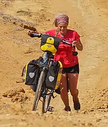 The purpose of Spínola's trip was to promote equality between men and women and the empowerment of women in all spheres of society. Her intention was to be the inspiration that some women need to rid themselves of the chains imposed by society, so that the only chains present in their lives are those of their bicycles. During her tour of the world by bicycle she escaped an attempted rape, an attack with a machete, and having a rifle pointed at her.[11] On 21 April 2017, she successfully finished her journey in Ushuaia, Argentina, becoming the first Spanish woman to go around the world on a bicycle without technical support, pedaling for three years and one month in 27 countries and traveling 30,000 km.[10][12][13]