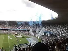 Cruzeiro's first stadium was the Estádio do Prado Mineiro, which belonged to the Federação Mineira de Futebol (FMF).[38] The club's first game at the stadium was 2–0 win over a Villa Nova/Palmeiras combine team from Nova Lima on 3 April 1921.[38][39] Cruzeiro would use the stadium until 1923 when the club built its own stadium, Estádio do Barro Preto.[39][40] On 23 July 1923, Cruzeiro debuted at the stadium in a 2–2 tie with Flamengo.[39][40] In 1945, the stadium went through renovations and would become at that time the largest stadium in the state with a capacity of 15,000 and later on would become known as Estádio Juscelino Kubitscheck (or Estádio JK).[39][40] Cruzeiro would use the stadium until 1965, when the Mineirão was opened. In 1983, the stadium was torn down and one of the club's social clubs (Sede Campestre) was built there.[39][41]