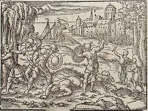 The Iron Age. Engraving by Virgil Solis for Ovid's Metamorphoses, Book I, 141–150.