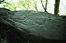 Similar patterns are known in Galicia,[23] which has given them the name of 'Galician style'. These types, the cup-and-ring, cup-and-ring with gutter and the gapped concentric circles motifs are shared between this part of Iberia and the British Isles, manifesting, together with other cultural expressions like megaliths or Bronze Age culture, a cultural link along the coasts of Atlantic Europe.[24]