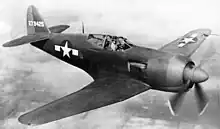 Curtiss XP-60C in flight, powered by a Pratt & Whitney R-2800 engine driving contra-rotating propellers