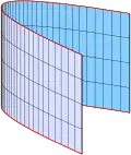 A cylindric section is the intersection of a cylinder's surface with a plane. They are, in general, curves and are special types of plane sections. The cylindric section by a plane that contains two elements of a cylinder is a parallelogram.[4] Such a cylindric section of a right cylinder is a rectangle.[4]
