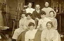 Adolf Höfer (1869–1927), the painter and his students of the "Damenakademie" Munich, around 1910