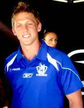 Daniel Harris (born 10 May 1982) is a former professional Australian rules footballer who played for the North Melbourne Football Club and Gold Coast Football Club in the Australian Football League (AFL). He played as a midfielder and has been noted as one of the best centre clearance players in the league.[1] He was also one of the league's best tacklers, making the top ten for most tackles in each season between 2006 and 2008.[2][3][4] After being delisted by North Melbourne he was drafted with the first selection in the 2010 Rookie Draft as a mature age rookie to join the new Gold Coast Football Club in the Victorian Football League (VFL) in 2010.