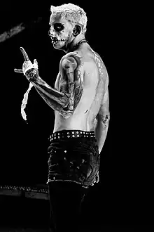 Ratsch incorporates many elements of his personal life into his wrestling persona; a longtime fan of punk rock, Ratsch's current ring name Darby Allin is derived from the frontman of the Germs, Darby Crash, and the transgressive musician GG Allin,[6] while his signature face paint, in which he paints half his face in a skull design, is born out of Ratsch's sentiment that he has been "half dead" since surviving the car accident in which his uncle died.[69] Another aspect of Ratsch's background he incorporates into his wrestling is skateboarding, as he rides a skateboard to the ring during his entrance, and occasionally uses it as a weapon. Previous to his career taking off in professional wrestling, Ratsch also sought to be a professional skateboarder. Ratsch was initially hesitant to integrate his skateboarding into his pro wrestling work, fearing that both the wrestling and skateboarding fandoms would perceive it as inauthentic; however, he overcame his doubts following encouragement and advice from Chris Jericho.[70][71]