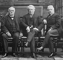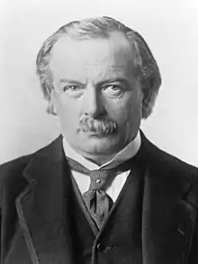 Historian Emyr Price referred to Lloyd George as "the first architect of Welsh devolution and its most famous advocate" as well as "the pioneering advocate of a powerful parliament for the Welsh people".[24] Lloyd George himself stated in 1880 "Is it not high time that Wales should the powers to manage its own affairs" and in 1890, "Parliament is so overweighted that it cannot possibly devote the time and trouble necessary to legislate for the peculiar and domestic retirement of each and every separate province of Britain". These statements would later be used to advocate for a Welsh assembly in the 1979 Welsh devolution referendum.[25] Lloyd George felt that disestablishment, land reform and other forms of Welsh devolution could only be achieved if Wales formed its own government within a federal imperial system.[19] In 1895, in a failed Church in Wales Bill, Lloyd George added an amendment in a discreet attempt at forming a sort of Welsh home rule, a national council for appointment of the Welsh Church commissioners. Although not condemned by Tom Ellis MP, this was to the annoyance of J. Bryn Roberts MP and the Home Secretary H. H. Asquith MP.[26][27][28]