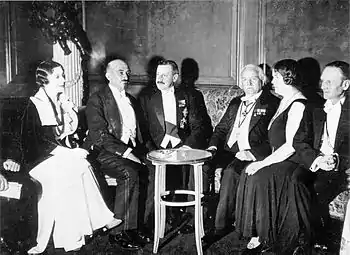 David Lloyd George, 1st Earl Lloyd-George of Dwyfor,[lower-alpha 1] OM, KStJ, PC (17 January 1863 – 26 March 1945) was Prime Minister of the United Kingdom from 1916 to 1922. A Liberal Party politician from Wales, he was known for leading the United Kingdom during the First World War, for social-reform policies (including the National Insurance Act 1911), for his role in the Paris Peace Conference, and for negotiating the establishment of the Irish Free State. He was the last Liberal Party prime minister; the party fell into third-party status shortly after the end of his premiership.